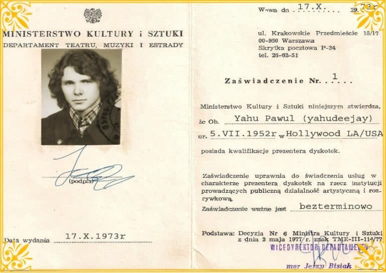 YahuDJ – Une interdiction de travail qui m’a été délivrée par une organisation gouvernementale communiste associant des deejays obéissants aux autorités polonaises communistes dans les années 1970. J’avais une jeune femme, un gentil enfant et je mourais de faim pour survivre…