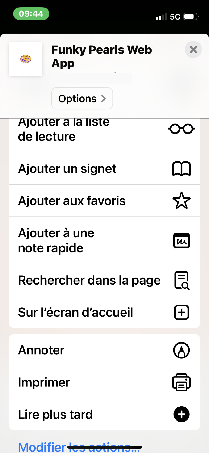 Nous avons déniché une astuce permettant d’ajouter facilement Funky Pearls Radio à l’écran d’accueil de votre iPhone ou iPad malgré ces contraintes.